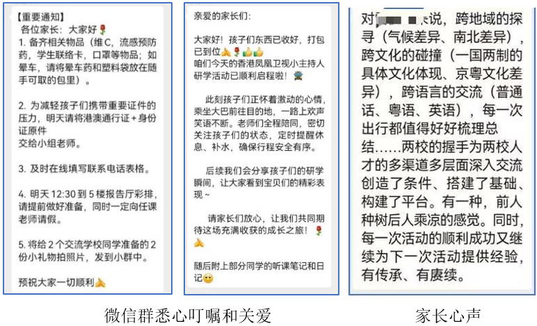 为保障本次学习交流活动顺利开展,我校国内外交流部门精心策划,与香港、广州姊妹校积极对接沟通。在刘莹主任的指导下,团队周密制定学习规划,组织召开学生家长会,并系统开展行前培训。各领队教师通力协作,从出访筹备、交流日程排布、节目打磨、活动细节敲定,到行程中各类突发状况的预判与应对方案,均进行了详尽部署。同时,团队建立了全体出访成员的总微信群,以及各小队的分组联络群,确保能够随时与家长保持顺畅沟通。正是凭借这一系列扎实周全的筹备工作,本次出行不仅赢得了家长的高度认可,更进一步延续了我校“风之旅”课程的良好口碑。